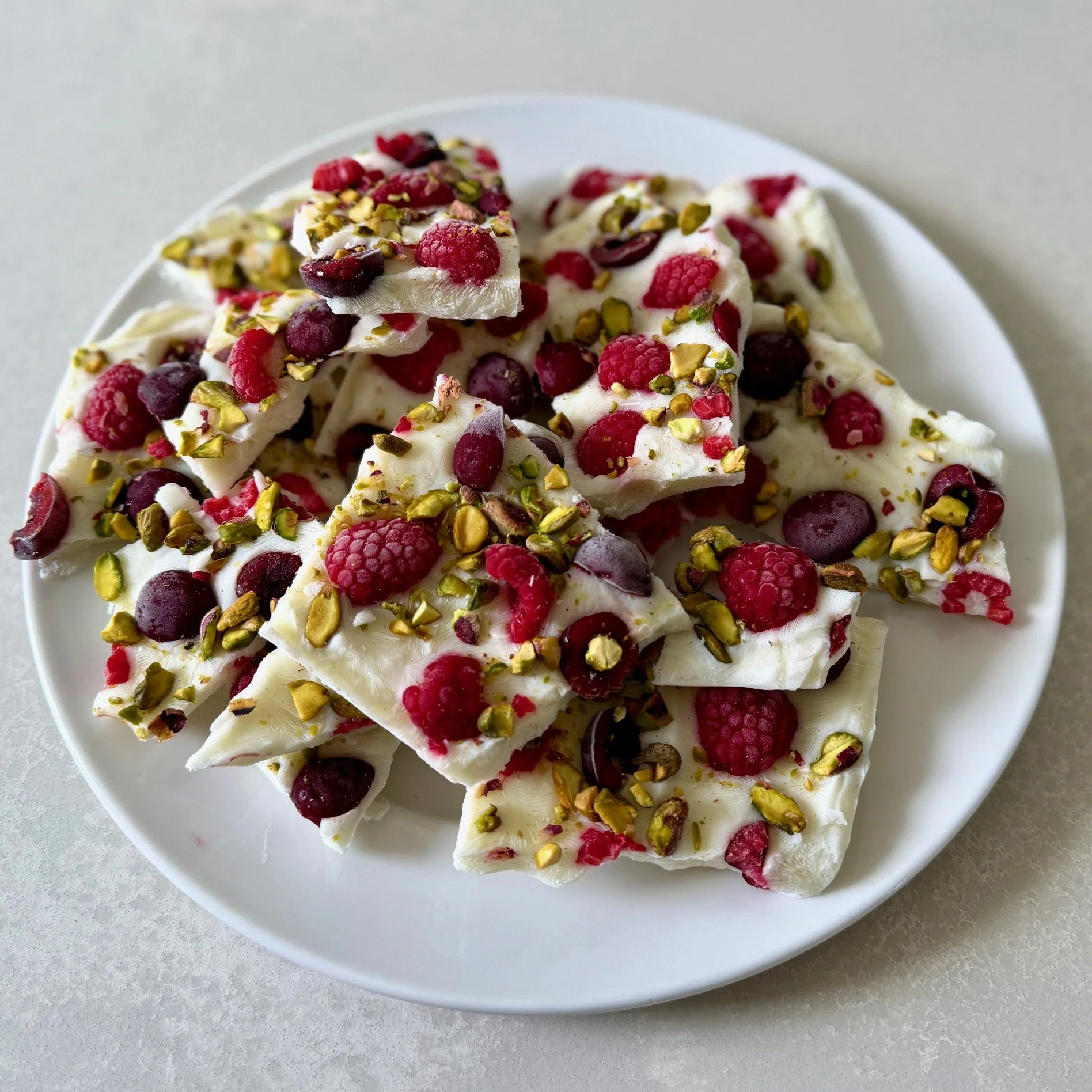 Light, cooling and quietly indulgent, this frozen yogurt bark is a reminder that nourishment can feel effortless. A handful of ingredients, thoughtfully layered, create a dessert that supports balance rather than disrupts it.